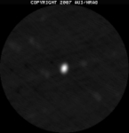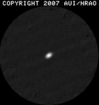• JPEG shows a thumbnail of the pipeline image. Clicking it will show you a larger version in the browser. Both JPEG images have a square transfer function to emphasize the lower levels a bit more; do not use the JPEGs for scientific purposes (see next). As a guideline, the lighter a thumbnail, the less difference between the peak flux density and the rms noise level, i.e., don't expect to see too much in in light gray images, especially if the rms noise given in the next column is in the order of microJy or less. On the other hand, dark images have a strong source in there somewhere.. (try looking in the center of the image).