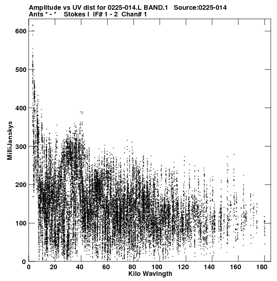 angle, the approximate noise level in prefixed units of Jansky, and a