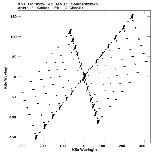 • Links is a collection of links that will show you the GIF uv-coverage and visibility plot for this data set in pop-up windows. See the README file on how to interpret these plots. They'll also get you to the project pipelining scripts and information log files as well as the full multi-source archive data on this project.