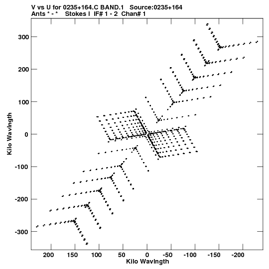 • Links is a collection of links that will show you the GIF uv-coverage and visibility plot for this data set in pop-up windows. See the README file on how to interpret these plots. They'll also get you to the project pipelining scripts and information log files as well as the full multi-source archive data on this project.