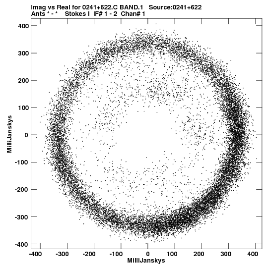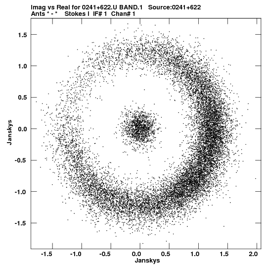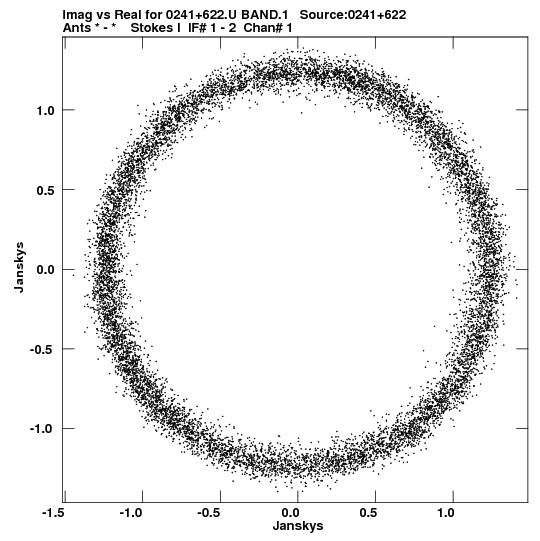 • Links is a collection of links that will show you the GIF uv-coverage and visibility plot for this data set in pop-up windows. See the README file on how to interpret these plots. They'll also get you to the project pipelining scripts and information log files as well as the full multi-source archive data on this project.