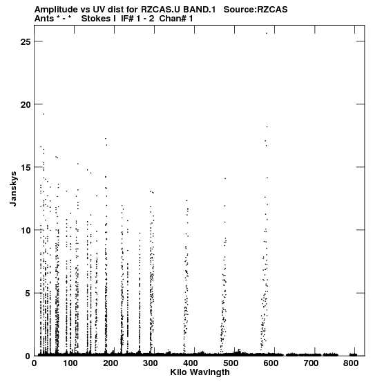 • UV Info lists the observed polarizations, shortest and longest VLA-arms (D=1km, C=3km, B=11km, A=36km, P=Pie Town link=75km), number of antennas used in the observation (though some may have been flagged as bad), the subarray setting of the array (1-5), a link to the calibrated single source uv FITS file and it's size (in red).