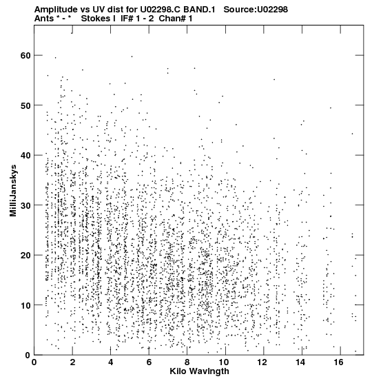 the calibrated single source uv FITS file and it's size (in red).