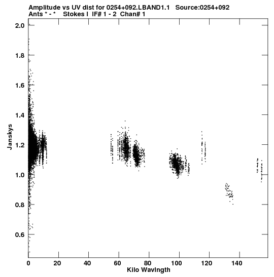 angle, the approximate noise level in prefixed units of Jansky, and a