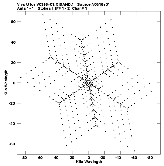 • Links is a collection of links that will show you the GIF uv-coverage and visibility plot for this data set in pop-up windows. See the README file on how to interpret these plots. They'll also get you to the project pipelining scripts and information log files as well as the full multi-source archive data on this project.
