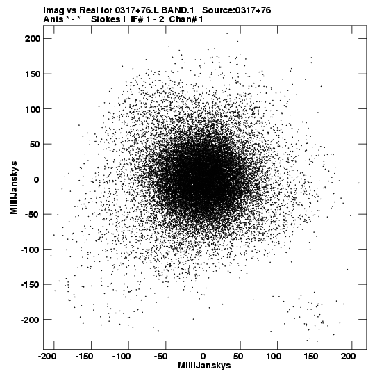 angle, the approximate noise level in prefixed units of Jansky, and a