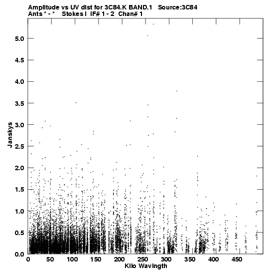 angle, the approximate noise level in prefixed units of Jansky, and a