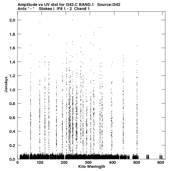 • Links is a collection of links that will show you the GIF uv-coverage and visibility plot for this data set in pop-up windows. See the README file on how to interpret these plots. They'll also get you to the project pipelining scripts and information log files as well as the full multi-source archive data on this project.