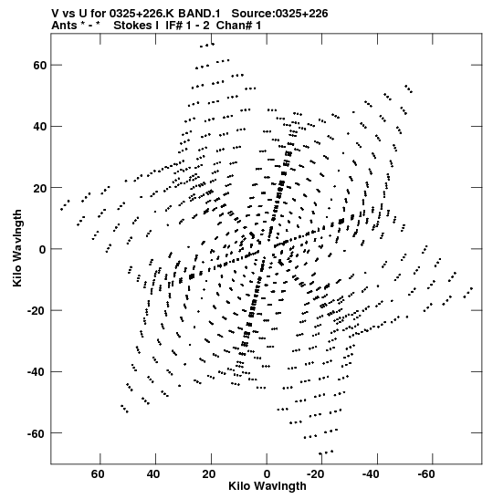 • Links is a collection of links that will show you the GIF uv-coverage and visibility plot for this data set in pop-up windows. See the README file on how to interpret these plots. They'll also get you to the project pipelining scripts and information log files as well as the full multi-source archive data on this project.