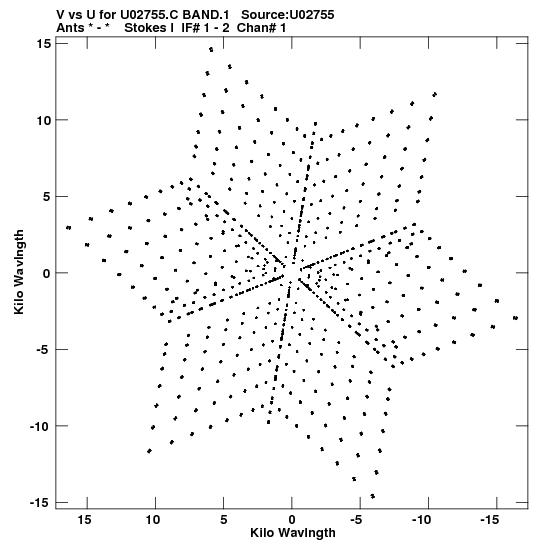 • Links is a collection of links that will show you the GIF uv-coverage and visibility plot for this data set in pop-up windows. See the README file on how to interpret these plots. They'll also get you to the project pipelining scripts and information log files as well as the full multi-source archive data on this project.