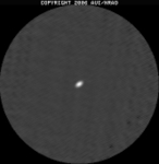 • JPEG shows a thumbnail of the pipeline image. Clicking it will show you a larger version in the browser. Both JPEG images have a square transfer function to emphasize the lower levels a bit more; do not use the JPEGs for scientific purposes (see next). As a guideline, the lighter a thumbnail, the less difference between the peak flux density and the rms noise level, i.e., don't expect to see too much in in light gray images, especially if the rms noise given in the next column is in the order of microJy or less. On the other hand, dark images have a strong source in there somewhere.. (try looking in the center of the image).