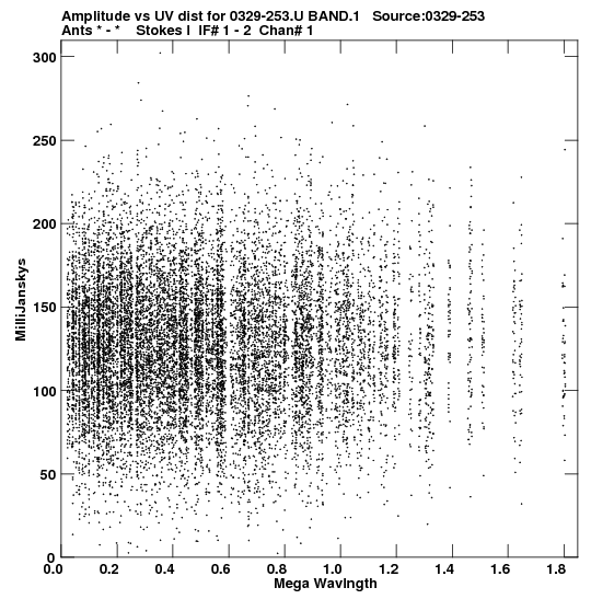 the calibrated single source uv FITS file and it's size (in red).