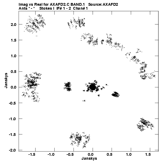 • Links is a collection of links that will show you the GIF uv-coverage and visibility plot for this data set in pop-up windows. See the README file on how to interpret these plots. They'll also get you to the project pipelining scripts and information log files as well as the full multi-source archive data on this project.