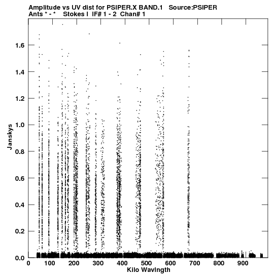 angle, the approximate noise level in prefixed units of Jansky, and a