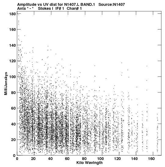 angle, the approximate noise level in prefixed units of Jansky, and a