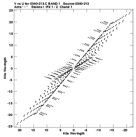 • Links is a collection of links that will show you the GIF uv-coverage and visibility plot for this data set in pop-up windows. See the README file on how to interpret these plots. They'll also get you to the project pipelining scripts and information log files as well as the full multi-source archive data on this project.