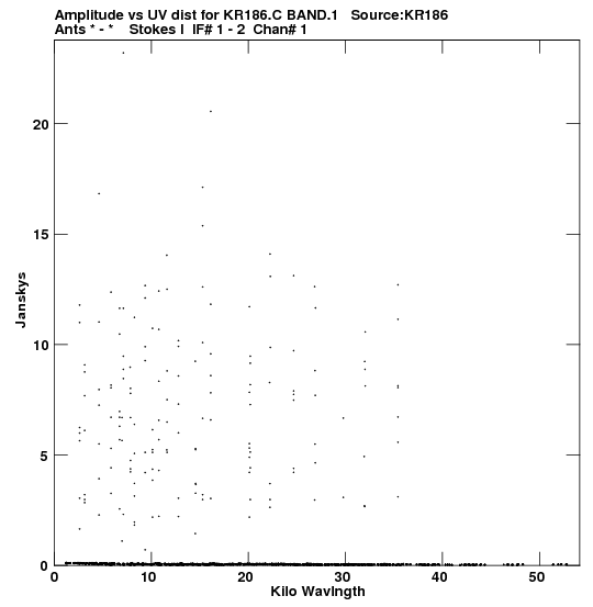 angle, the approximate noise level in prefixed units of Jansky, and a