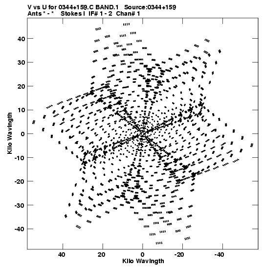 • Links is a collection of links that will show you the GIF uv-coverage and visibility plot for this data set in pop-up windows. See the README file on how to interpret these plots. They'll also get you to the project pipelining scripts and information log files as well as the full multi-source archive data on this project.