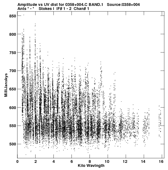 angle, the approximate noise level in prefixed units of Jansky, and a