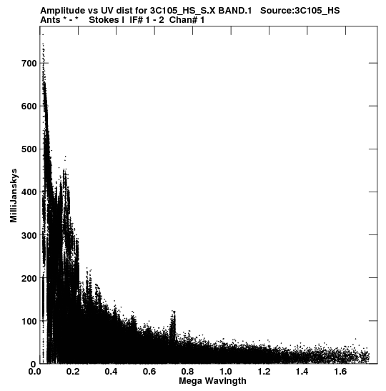 angle, the approximate noise level in prefixed units of Jansky, and a