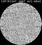 • JPEG shows a thumbnail of the pipeline image. Clicking it will show you a larger version in the browser. Both JPEG images have a square transfer function to emphasize the lower levels a bit more; do not use the JPEGs for scientific purposes (see next). As a guideline, the lighter a thumbnail, the less difference between the peak flux density and the rms noise level, i.e., don't expect to see too much in in light gray images, especially if the rms noise given in the next column is in the order of microJy or less. On the other hand, dark images have a strong source in there somewhere.. (try looking in the center of the image).