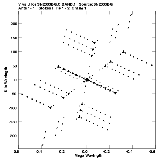 • Links is a collection of links that will show you the GIF uv-coverage and visibility plot for this data set in pop-up windows. See the README file on how to interpret these plots. They'll also get you to the project pipelining scripts and information log files as well as the full multi-source archive data on this project.