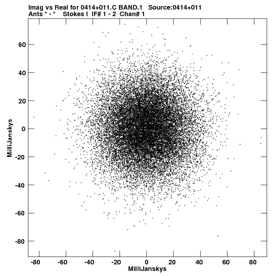 angle, the approximate noise level in prefixed units of Jansky, and a