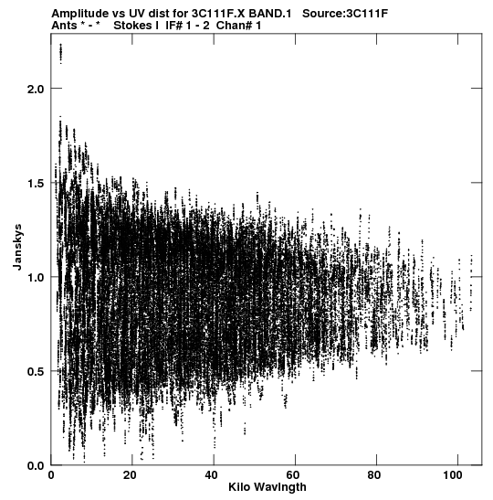 angle, the approximate noise level in prefixed units of Jansky, and a