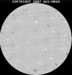 • JPEG shows a thumbnail of the pipeline image. Clicking it will show you a larger version in the browser. Both JPEG images have a square transfer function to emphasize the lower levels a bit more; do not use the JPEGs for scientific purposes (see next). As a guideline, the lighter a thumbnail, the less difference between the peak flux density and the rms noise level, i.e., don't expect to see too much in in light gray images, especially if the rms noise given in the next column is in the order of microJy or less. On the other hand, dark images have a strong source in there somewhere.. (try looking in the center of the image).