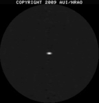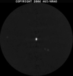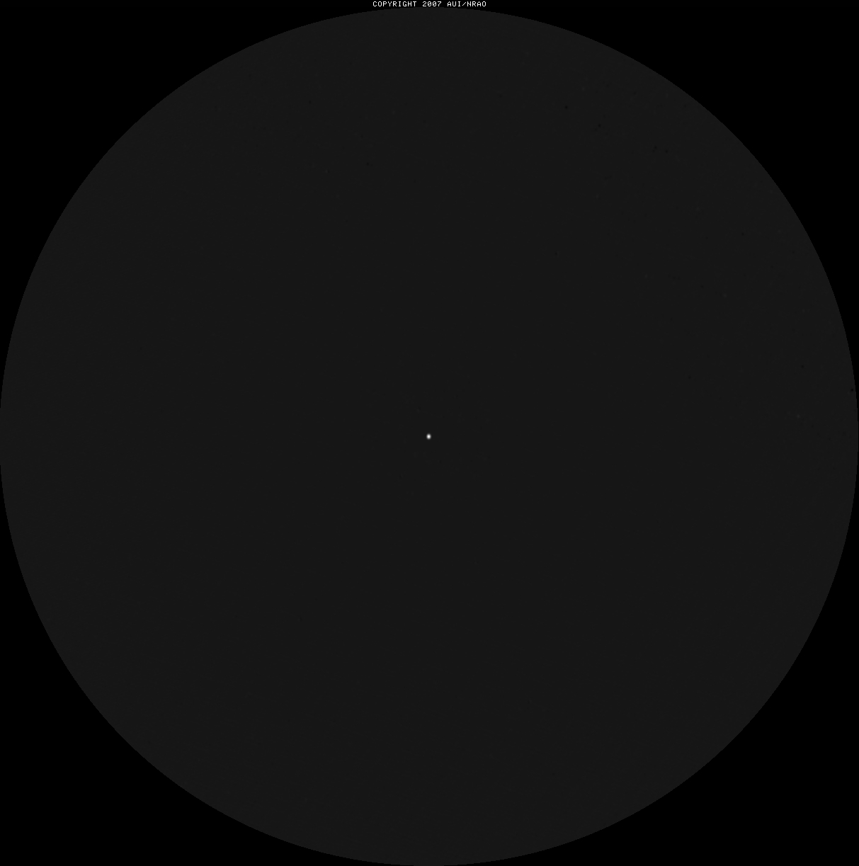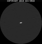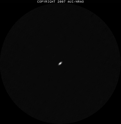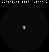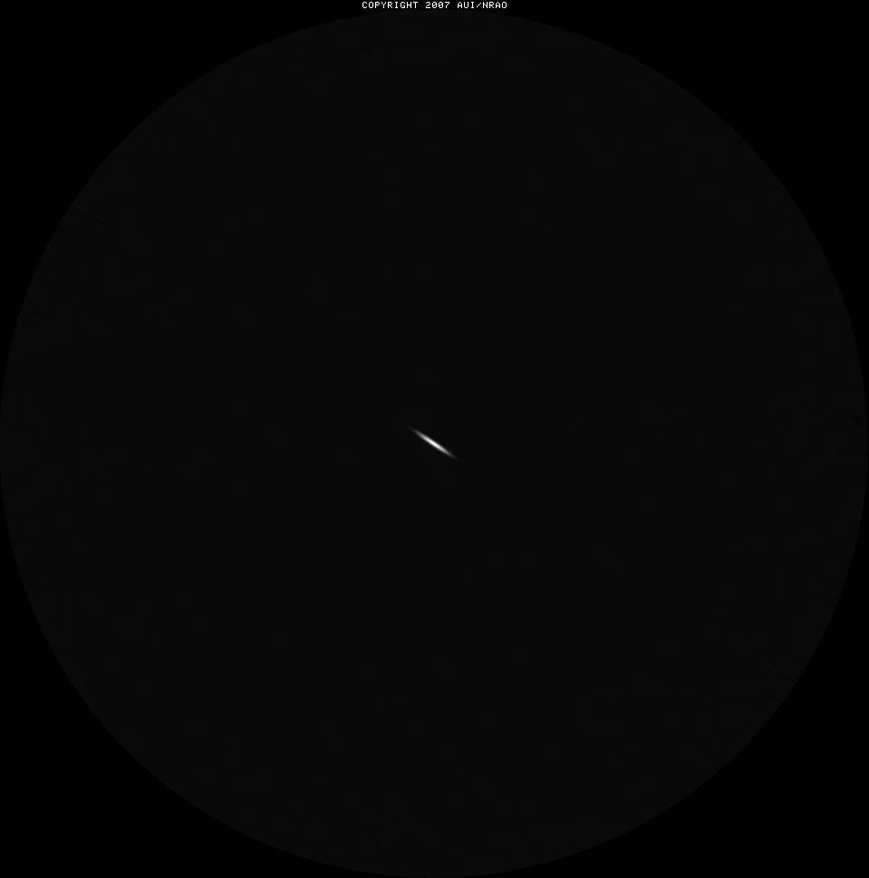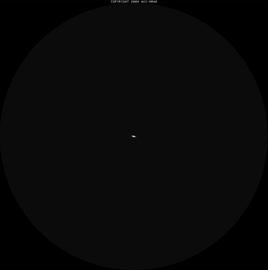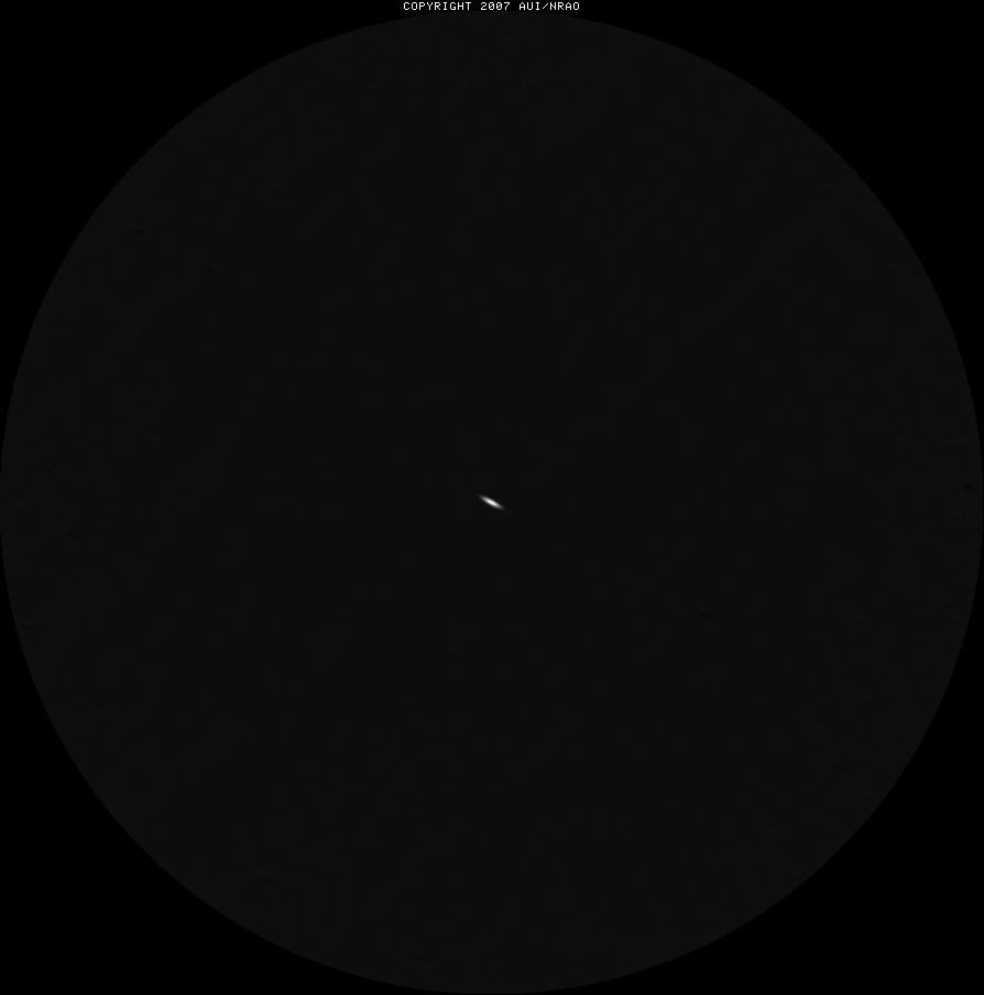 • JPEG shows a thumbnail of the pipeline image. Clicking it will show you a larger version in the browser. Both JPEG images have a square transfer function to emphasize the lower levels a bit more; do not use the JPEGs for scientific purposes (see next). As a guideline, the lighter a thumbnail, the less difference between the peak flux density and the rms noise level, i.e., don't expect to see too much in in light gray images, especially if the rms noise given in the next column is in the order of microJy or less. On the other hand, dark images have a strong source in there somewhere.. (try looking in the center of the image).