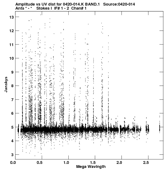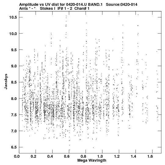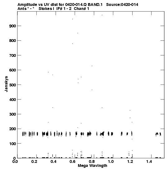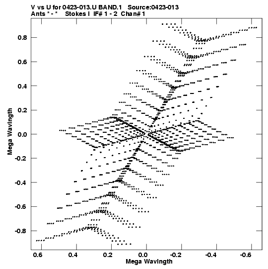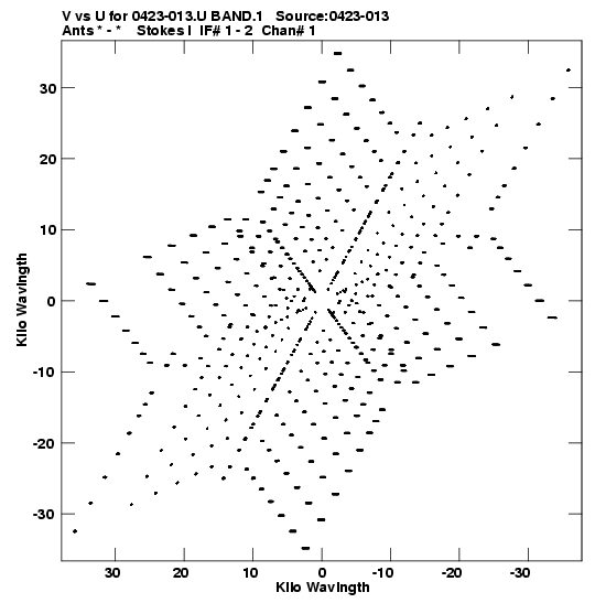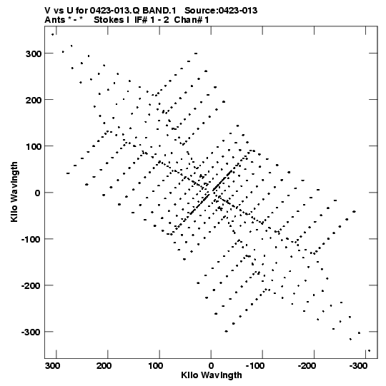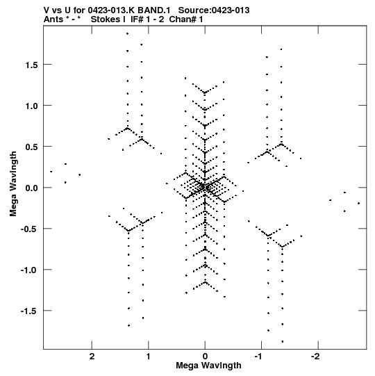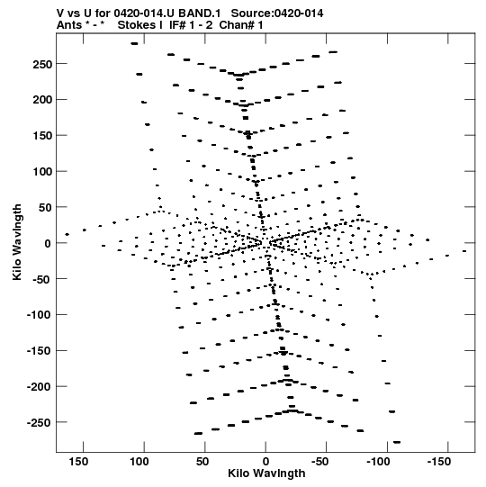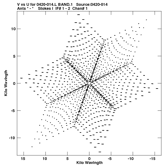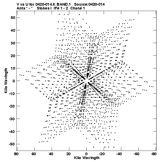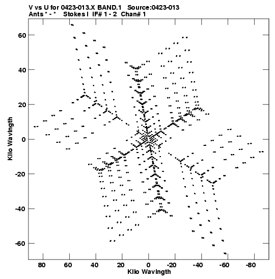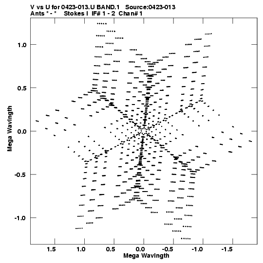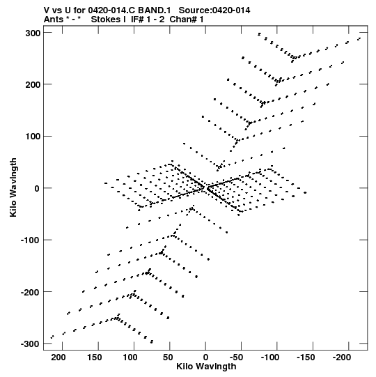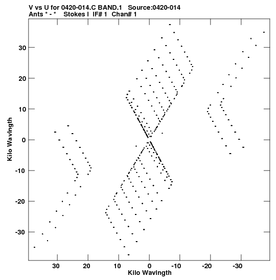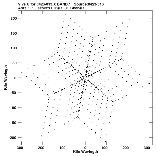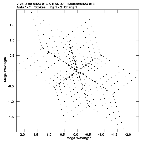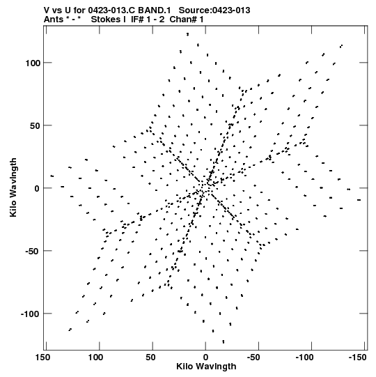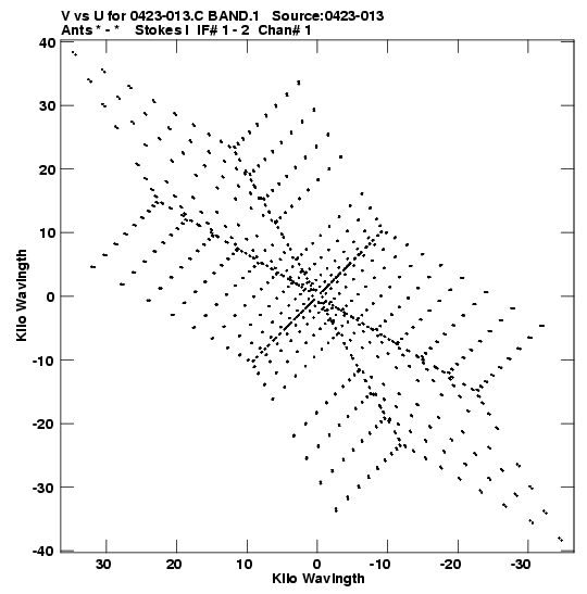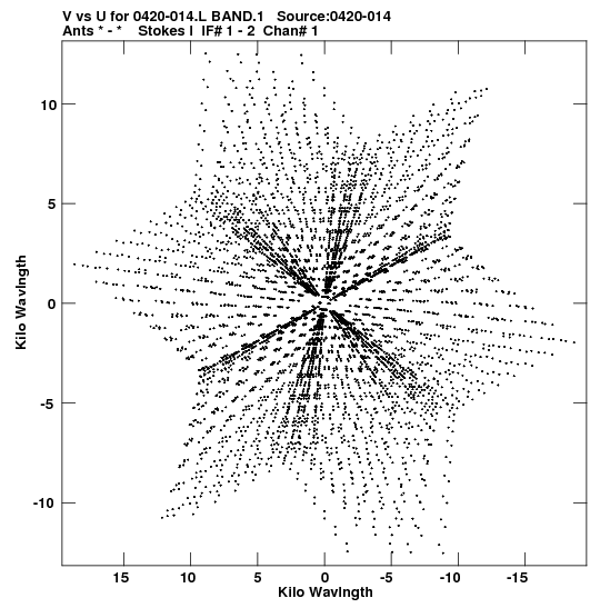 • Links is a collection of links that will show you the GIF uv-coverage and visibility plot for this data set in pop-up windows. See the README file on how to interpret these plots. They'll also get you to the project pipelining scripts and information log files as well as the full multi-source archive data on this project.