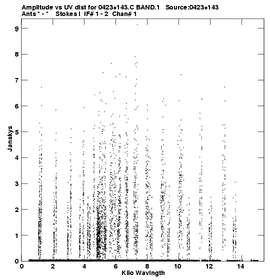 angle, the approximate noise level in prefixed units of Jansky, and a