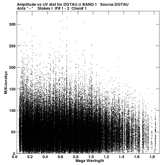 angle, the approximate noise level in prefixed units of Jansky, and a