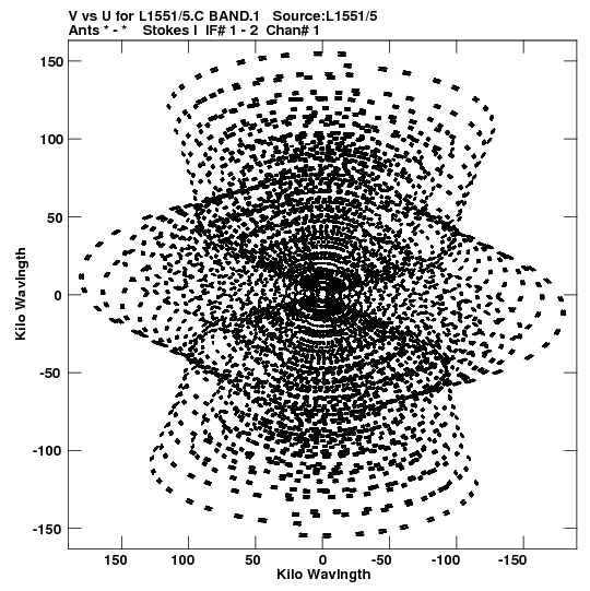 • Links is a collection of links that will show you the GIF uv-coverage and visibility plot for this data set in pop-up windows. See the README file on how to interpret these plots. They'll also get you to the project pipelining scripts and information log files as well as the full multi-source archive data on this project.