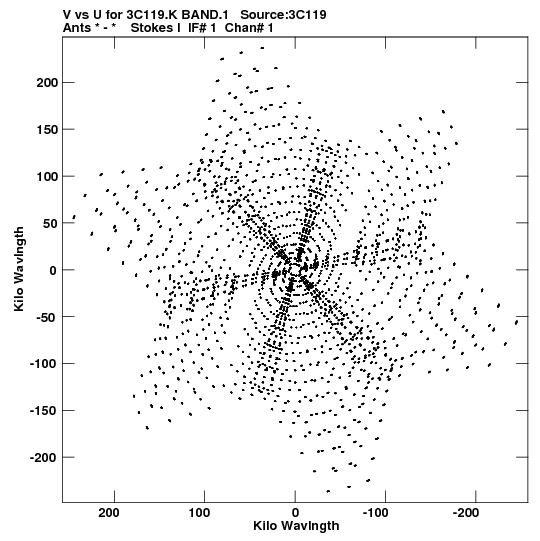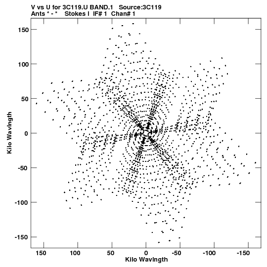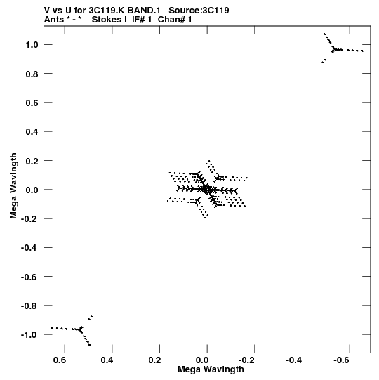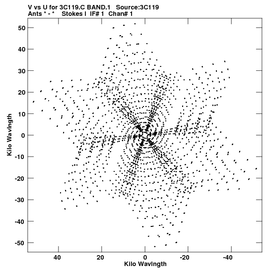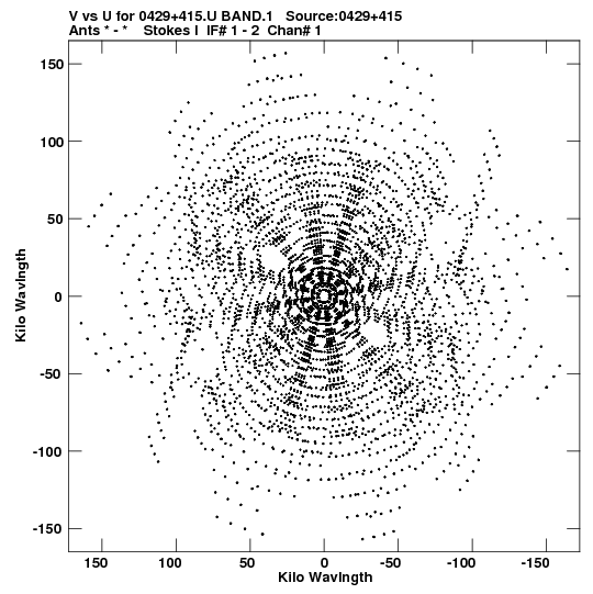 • Links is a collection of links that will show you the GIF uv-coverage and visibility plot for this data set in pop-up windows. See the README file on how to interpret these plots. They'll also get you to the project pipelining scripts and information log files as well as the full multi-source archive data on this project.