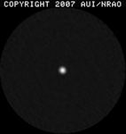 • JPEG shows a thumbnail of the pipeline image. Clicking it will show you a larger version in the browser. Both JPEG images have a square transfer function to emphasize the lower levels a bit more; do not use the JPEGs for scientific purposes (see next). As a guideline, the lighter a thumbnail, the less difference between the peak flux density and the rms noise level, i.e., don't expect to see too much in in light gray images, especially if the rms noise given in the next column is in the order of microJy or less. On the other hand, dark images have a strong source in there somewhere.. (try looking in the center of the image).