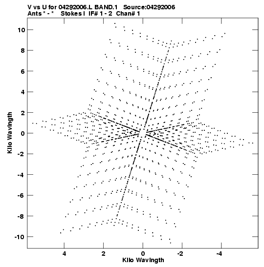 • Links is a collection of links that will show you the GIF uv-coverage and visibility plot for this data set in pop-up windows. See the README file on how to interpret these plots. They'll also get you to the project pipelining scripts and information log files as well as the full multi-source archive data on this project.