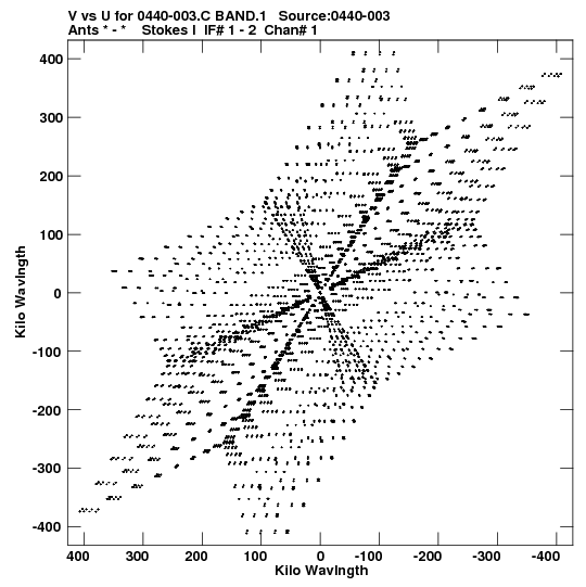 • Links is a collection of links that will show you the GIF uv-coverage and visibility plot for this data set in pop-up windows. See the README file on how to interpret these plots. They'll also get you to the project pipelining scripts and information log files as well as the full multi-source archive data on this project.