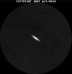 • JPEG shows a thumbnail of the pipeline image. Clicking it will show you a larger version in the browser. Both JPEG images have a square transfer function to emphasize the lower levels a bit more; do not use the JPEGs for scientific purposes (see next). As a guideline, the lighter a thumbnail, the less difference between the peak flux density and the rms noise level, i.e., don't expect to see too much in in light gray images, especially if the rms noise given in the next column is in the order of microJy or less. On the other hand, dark images have a strong source in there somewhere.. (try looking in the center of the image).