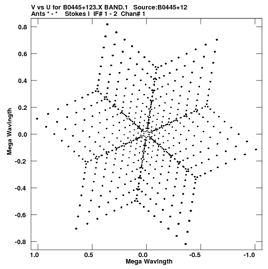 angle, the approximate noise level in prefixed units of Jansky, and a
