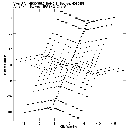 • Links is a collection of links that will show you the GIF uv-coverage and visibility plot for this data set in pop-up windows. See the README file on how to interpret these plots. They'll also get you to the project pipelining scripts and information log files as well as the full multi-source archive data on this project.
