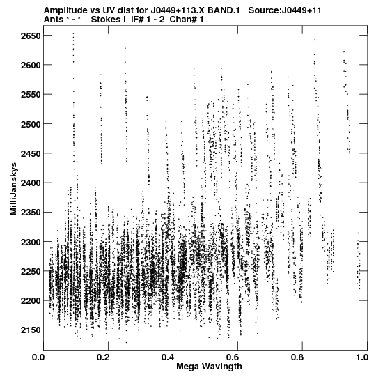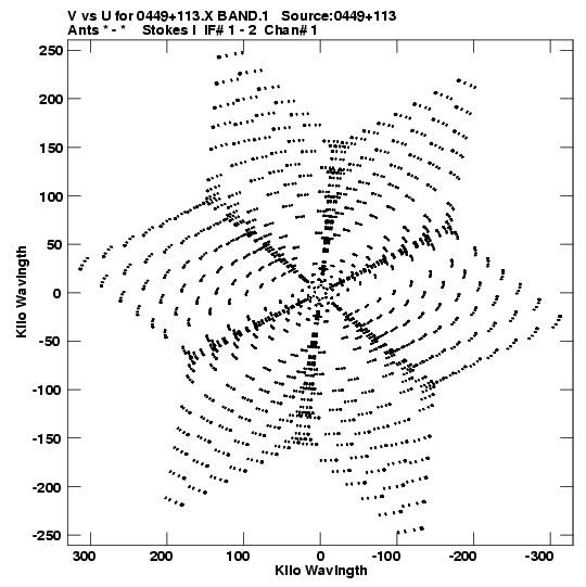 • Links is a collection of links that will show you the GIF uv-coverage and visibility plot for this data set in pop-up windows. See the README file on how to interpret these plots. They'll also get you to the project pipelining scripts and information log files as well as the full multi-source archive data on this project.