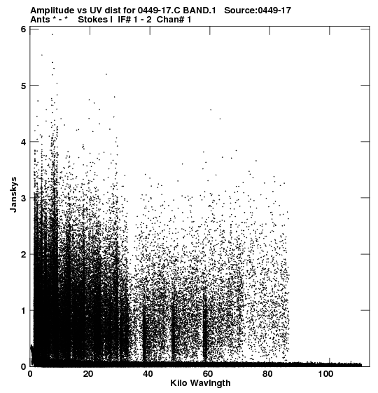 angle, the approximate noise level in prefixed units of Jansky, and a