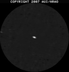 • JPEG shows a thumbnail of the pipeline image. Clicking it will show you a larger version in the browser. Both JPEG images have a square transfer function to emphasize the lower levels a bit more; do not use the JPEGs for scientific purposes (see next). As a guideline, the lighter a thumbnail, the less difference between the peak flux density and the rms noise level, i.e., don't expect to see too much in in light gray images, especially if the rms noise given in the next column is in the order of microJy or less. On the other hand, dark images have a strong source in there somewhere.. (try looking in the center of the image).