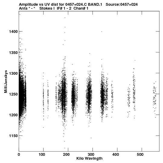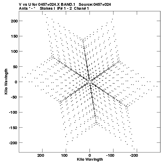 • Links is a collection of links that will show you the GIF uv-coverage and visibility plot for this data set in pop-up windows. See the README file on how to interpret these plots. They'll also get you to the project pipelining scripts and information log files as well as the full multi-source archive data on this project.