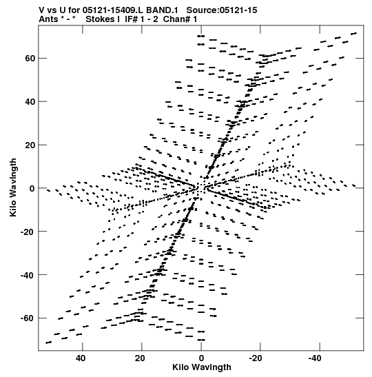 • Links is a collection of links that will show you the GIF uv-coverage and visibility plot for this data set in pop-up windows. See the README file on how to interpret these plots. They'll also get you to the project pipelining scripts and information log files as well as the full multi-source archive data on this project.