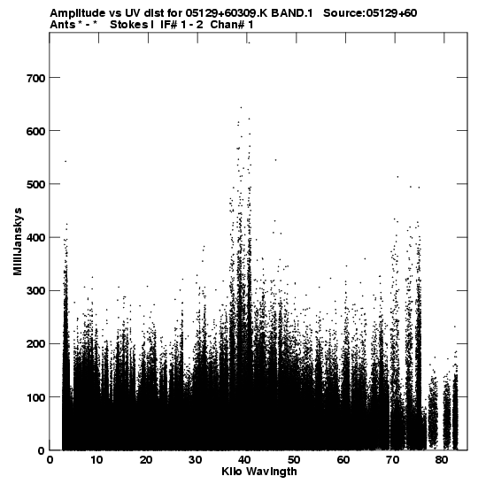 angle, the approximate noise level in prefixed units of Jansky, and a