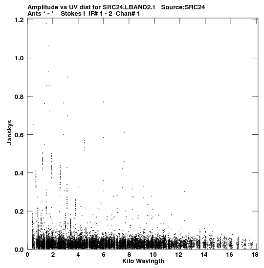 angle, the approximate noise level in prefixed units of Jansky, and a