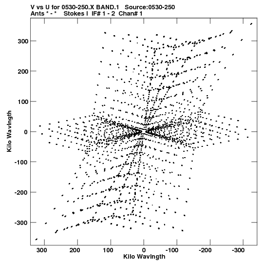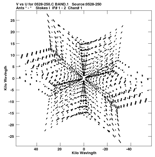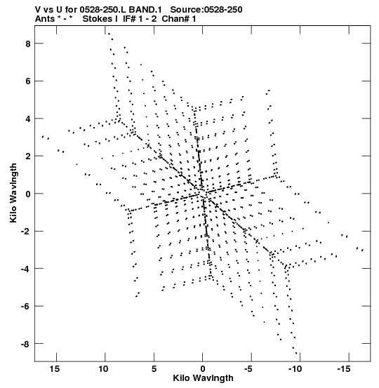 • Links is a collection of links that will show you the GIF uv-coverage and visibility plot for this data set in pop-up windows. See the README file on how to interpret these plots. They'll also get you to the project pipelining scripts and information log files as well as the full multi-source archive data on this project.