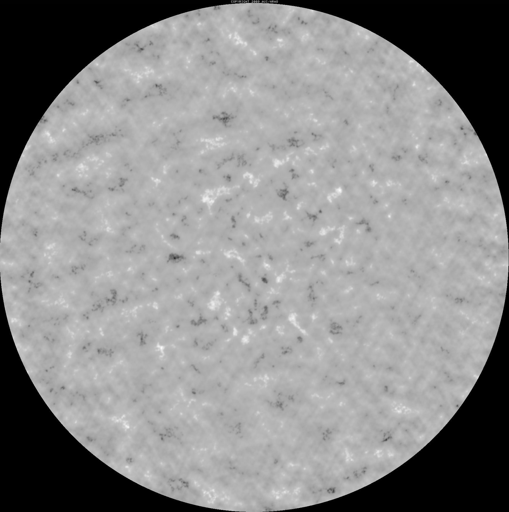 • JPEG shows a thumbnail of the pipeline image. Clicking it will show you a larger version in the browser. Both JPEG images have a square transfer function to emphasize the lower levels a bit more; do not use the JPEGs for scientific purposes (see next). As a guideline, the lighter a thumbnail, the less difference between the peak flux density and the rms noise level, i.e., don't expect to see too much in in light gray images, especially if the rms noise given in the next column is in the order of microJy or less. On the other hand, dark images have a strong source in there somewhere.. (try looking in the center of the image).